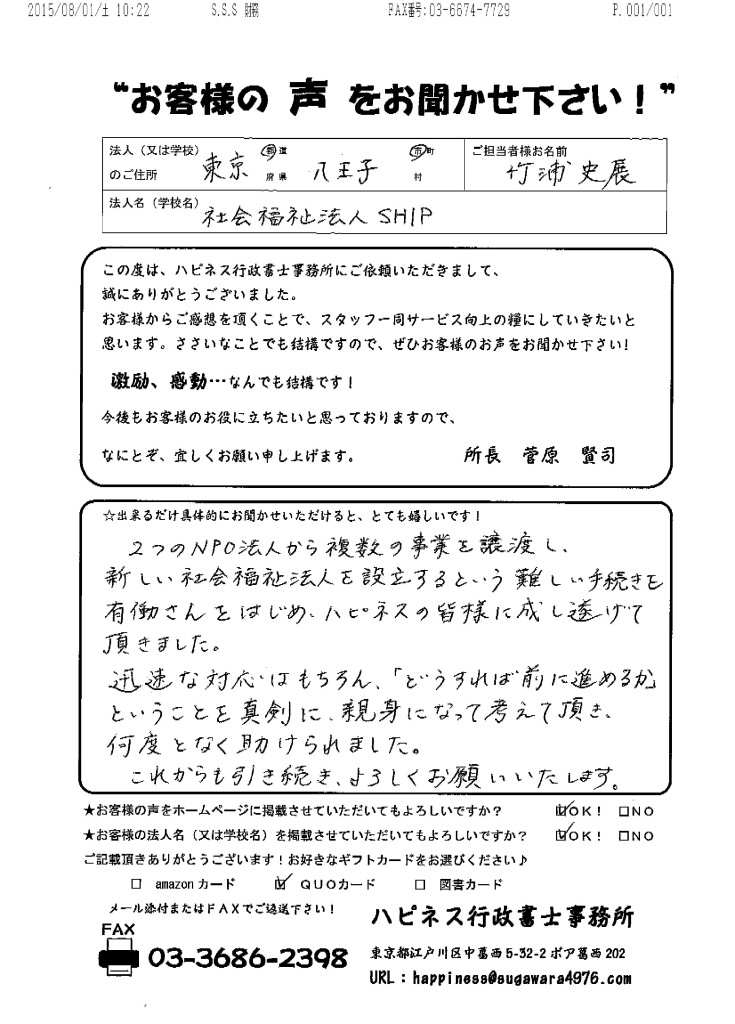 社会福祉法人SHIP様 【社会福祉法人設立】